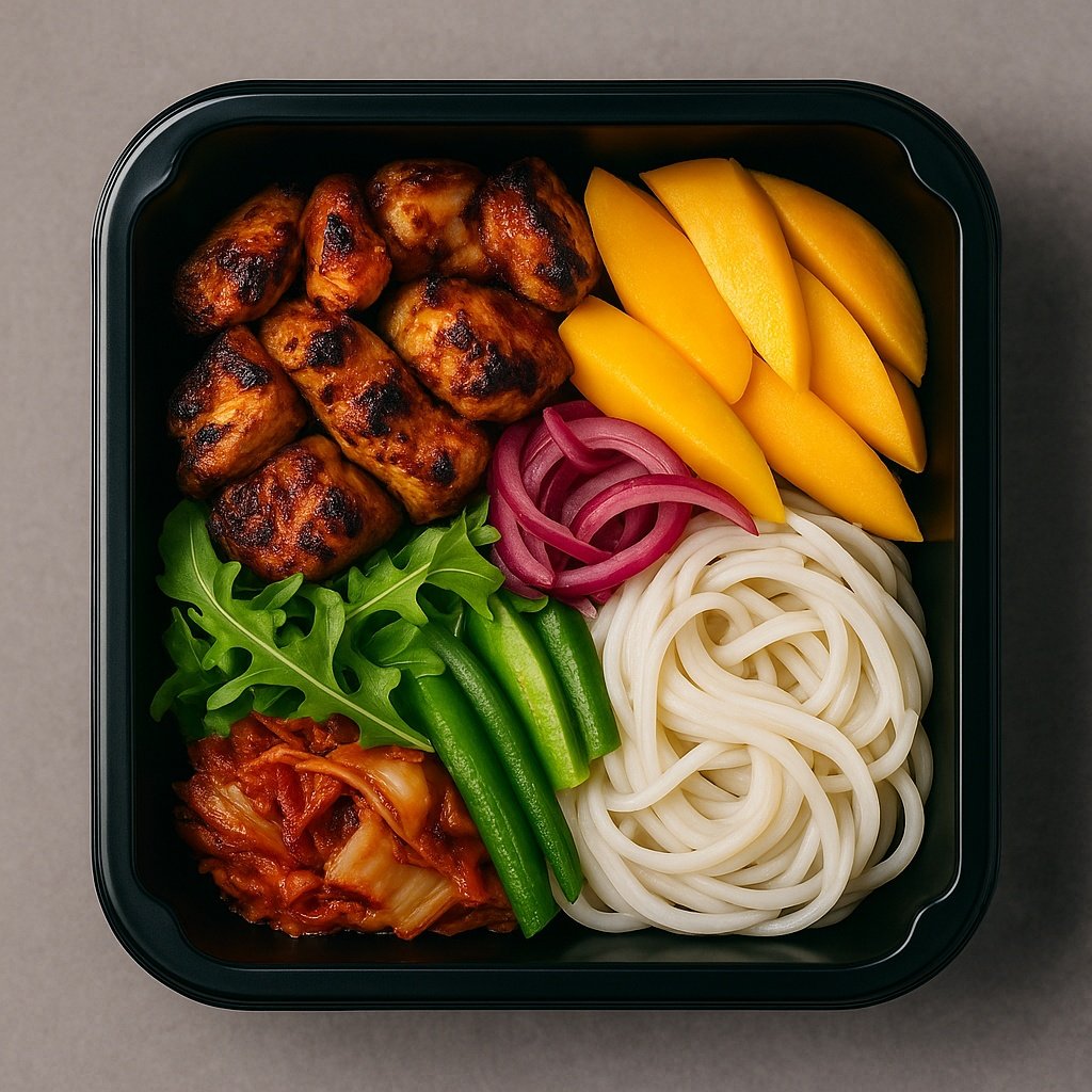 Z kurczakiem po koreańsku z mango i makaronem ryżowym